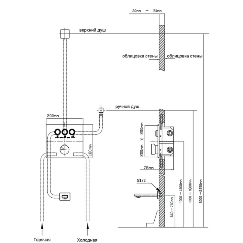 Аэратор, Душевой шланг, Душевая лейка, Подключение для душевого шланга с держателем, Верхний душ, Излив, Скрытая монтажная часть, Кронштейн, Термостат