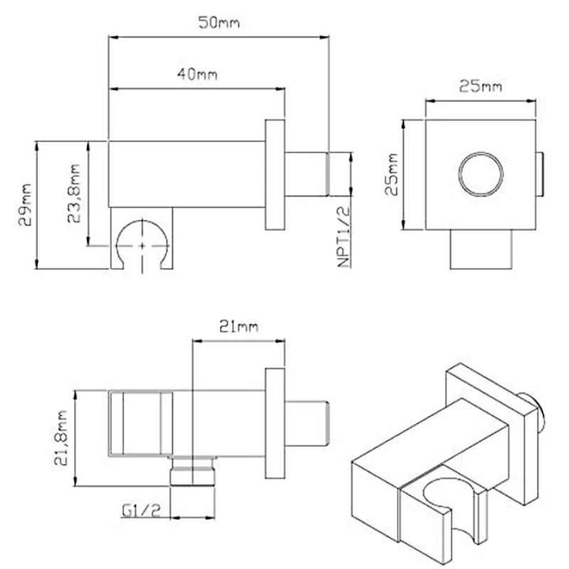 Аэратор, Душевой шланг, Душевая лейка, Подключение для душевого шланга с держателем, Верхний душ, Излив, Скрытая монтажная часть, Кронштейн, Термостат
