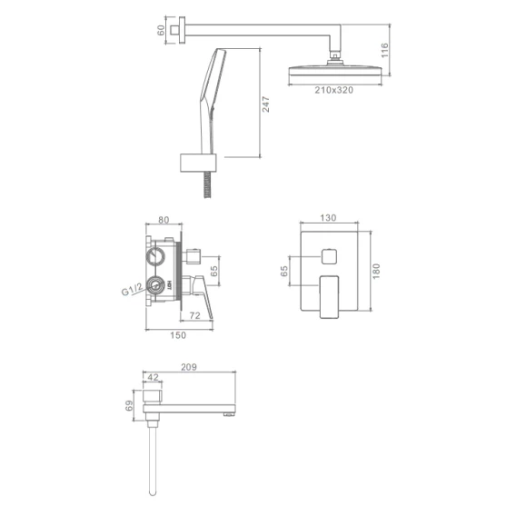 Душевой комплект 320x210 мм Raglo R30.27.06