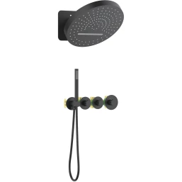 Душевой шланг, Душевая лейка, Подключение для душевого шланга с держателем, Верхний душ, Скрытая монтажная часть, Кронштейн, Термостат