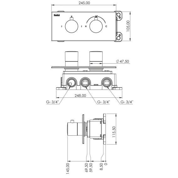 Душевой шланг, Душевая лейка, Подключение для душевого шланга с держателем, Верхний душ, Скрытая монтажная часть, Кронштейн, Термостат