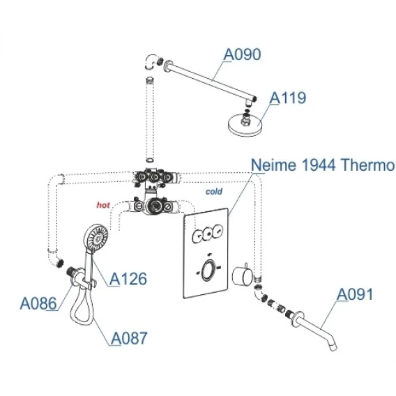 • Термостатический смеситель для ванны и душа Neime 1944 Thermo
