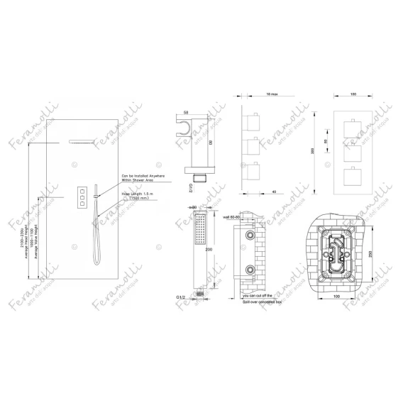 Душевой комплект 550x230 мм Feramolli Termostato GL7069