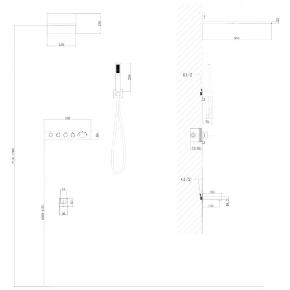 Душевой комплект 555x230 мм Abber Rund AF8753NG