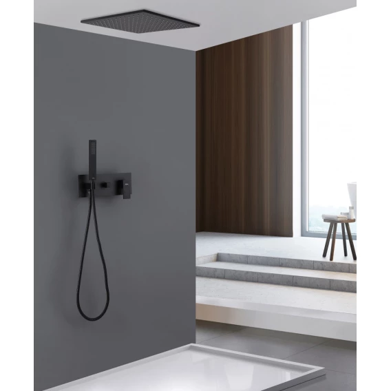 Душевой комплект Abber Daheim AF8221B 400 мм, со смесителем, черный матовый