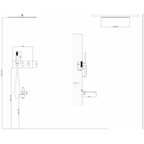 Аэратор, Душевой шланг, Душевая лейка, Подключение для душевого шланга с держателем, Верхний душ, Излив, Скрытая монтажная часть, Термостат