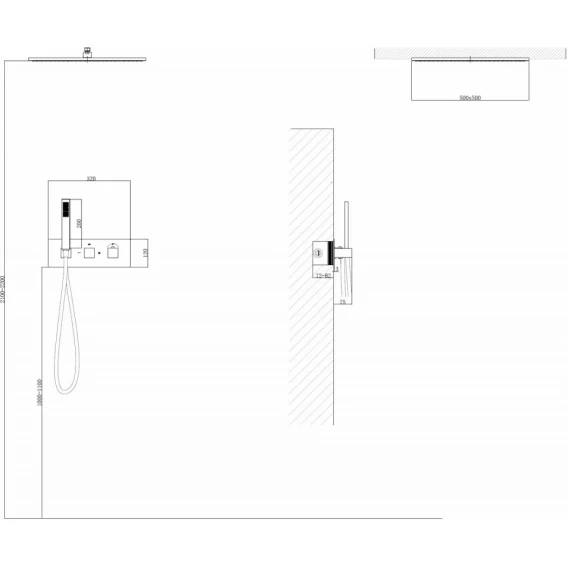 Душевой шланг, Душевая лейка, Подключение для душевого шланга с держателем, Верхний душ, Скрытая монтажная часть, Термостат