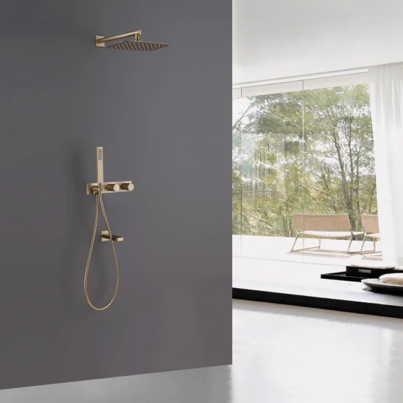 Душевой комплект Abber Rund AF8717G 300 мм, CoolStart, со смесителем, золотой матовый