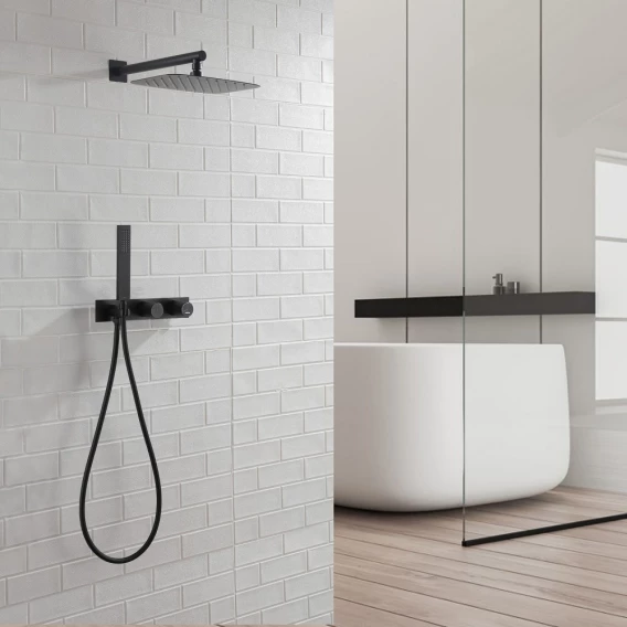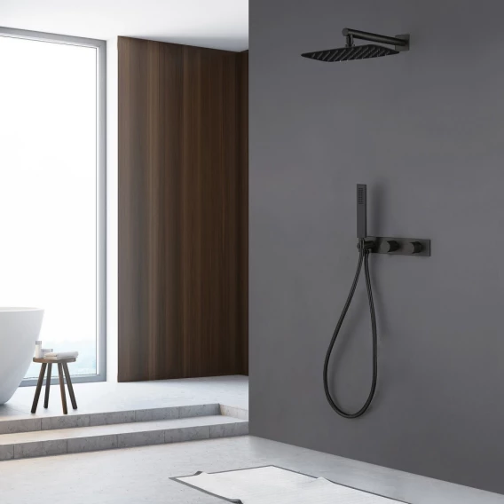 Душевой комплект Abber Rund AF8718B 300x200 мм, CoolStart, со смесителем, черный матовый