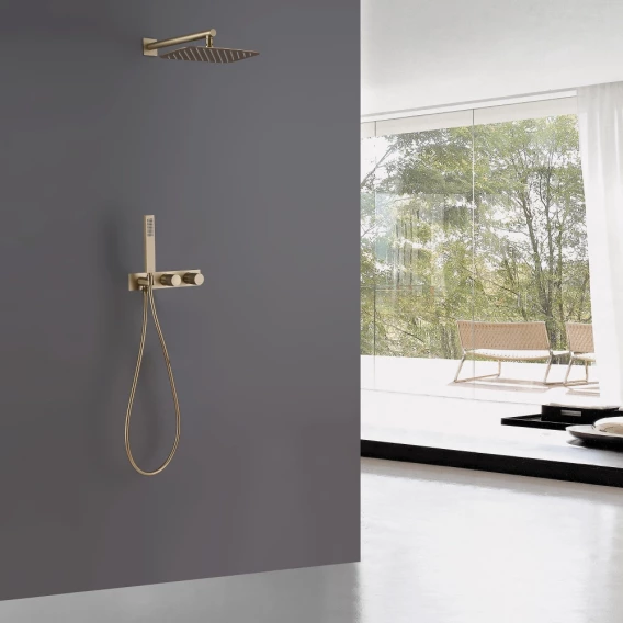 Душевой комплект Abber Rund AF8718G 300x200 мм, CoolStart, со смесителем, золотой матовый