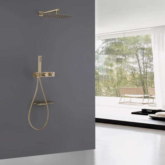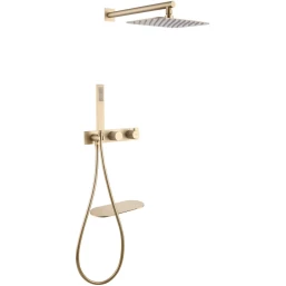 Душевой комплект Abber Rund AF8750G 300x200 мм, с термостатом, золотой матовый