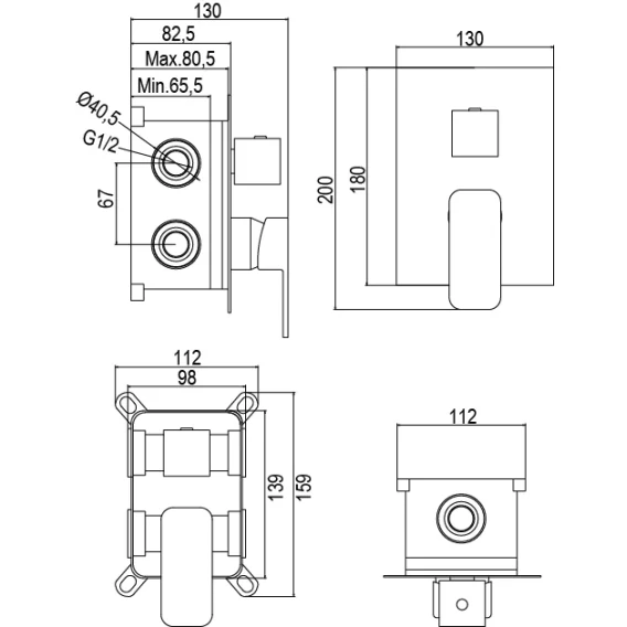 Аэратор, Душевой шланг, Душевая лейка, Подключение для душевого шланга с держателем, Верхний душ, Излив, Скрытая монтажная часть, Смеситель, Кронштейн