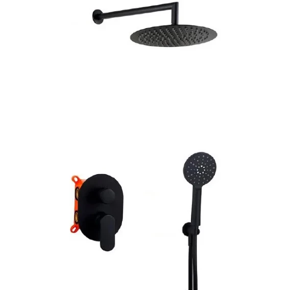 Душевой комплект AQG Beta 19BETER20805 250 мм, со смесителем, черный матовый