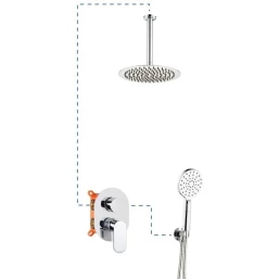 Душевой шланг, Душевая лейка, Подключение для душевого шланга с держателем, Верхний душ, Скрытая монтажная часть, Смеситель, Кронштейн