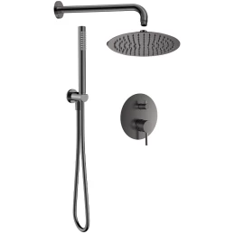 Душевой комплект AQUAme AQM8402GM 300 мм, со смесителем, оружейная сталь