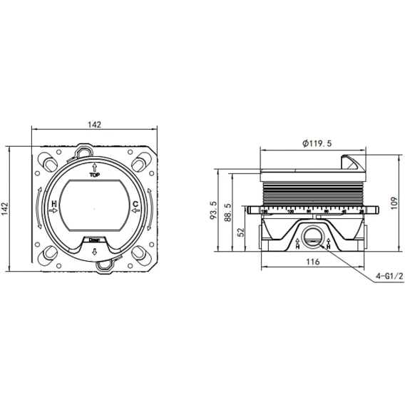 Душевой шланг, Душевая лейка, Подключение для душевого шланга с держателем, Верхний душ, Скрытая монтажная часть, Кронштейн, Термостат