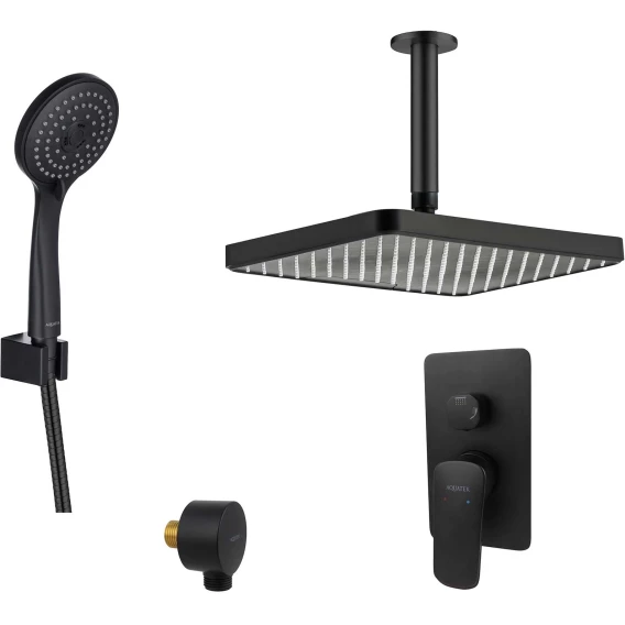 Душевой комплект Aquatek Вега AQ1073MB 305x205 мм, со смесителем, черный матовый