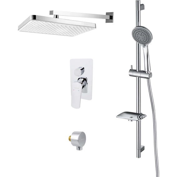 Душевой шланг, Душевая лейка, Держатель для душевой лейки, Подключение для душевого шланга, Верхний душ, Скрытая монтажная часть, Смеситель, Кронштейн, Мыльница, Штанга душевая