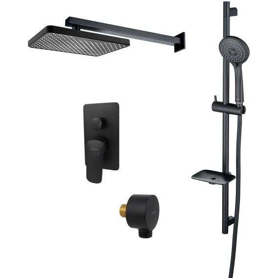 Душевой комплект Aquatek Вега AQ1074MB 305x205 мм, со смесителем, черный матовый
