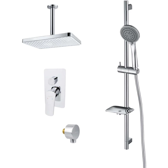 Душевой шланг, Душевая лейка, Держатель для душевой лейки, Подключение для душевого шланга, Верхний душ, Скрытая монтажная часть, Смеситель, Кронштейн, Мыльница, Штанга душевая