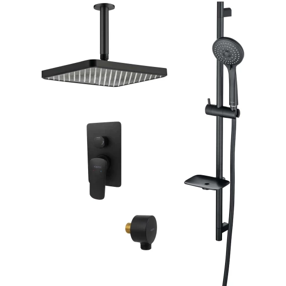 Душевой комплект Aquatek Вега AQ1075MB 305x205 мм, со смесителем, черный матовый