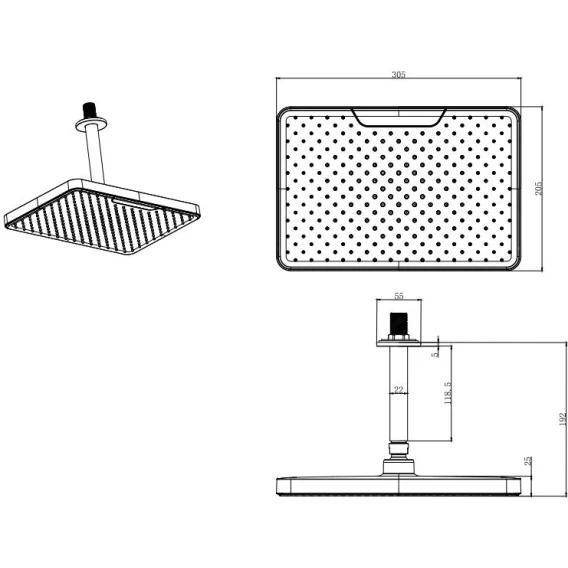 Душевой шланг, Душевая лейка, Держатель для душевой лейки, Подключение для душевого шланга, Верхний душ, Скрытая монтажная часть, Смеситель, Кронштейн, Мыльница, Штанга душевая