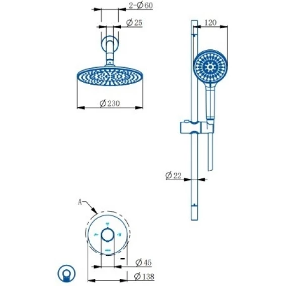 Душевой комплект Arrow AG372001GGP-1 230 мм, со смесителем, оружейная сталь