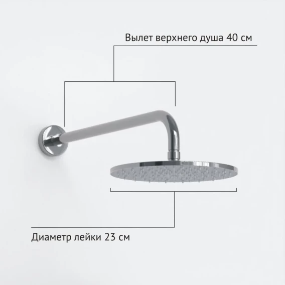 Аэратор, Душевой шланг, Душевая лейка, Подключение для душевого шланга с держателем, Верхний душ, Излив, Скрытая монтажная часть, Смеситель, Кронштейн