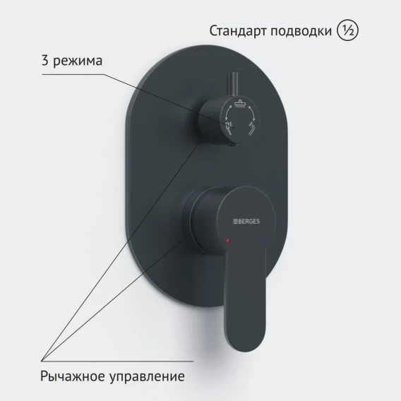 Душевой комплект Berges Nardis 3R 071014 230 мм, со смесителем, черный матовый