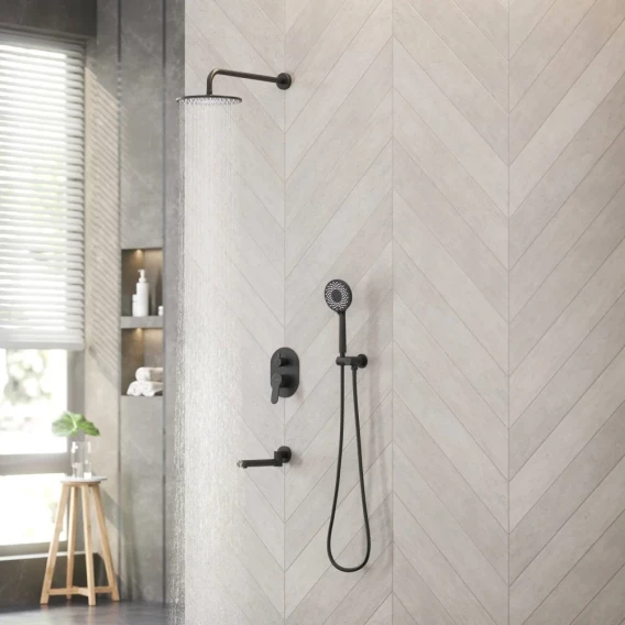 Душевая система Wonzon & Woghand WW-B2166-A-MB 224 мм, со смесителем, черный матовый