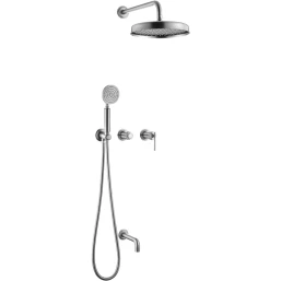 Душевой шланг, Душевая лейка, Подключение для душевого шланга с держателем, Верхний душ, Излив, Скрытая монтажная часть, Смеситель, Кронштейн