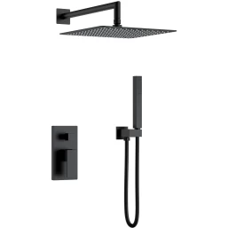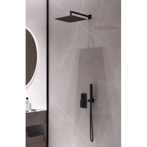 Душевой комплект Boheme Qubic 474-3-B 300 мм, со смесителем, черный матовый