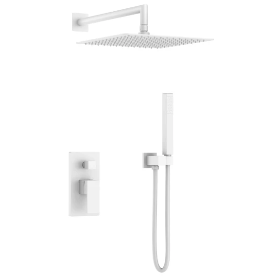 Душевой комплект Boheme Qubic 474-3-MW 300 мм, со смесителем, белый матовый