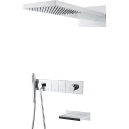Душевой шланг, Душевая лейка, Подключение для душевого шланга с держателем, Верхний душ, Излив, Скрытая монтажная часть, Смеситель, Кронштейн