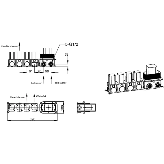 Душевой шланг, Душевая лейка, Подключение для душевого шланга с держателем, Верхний душ, Скрытая монтажная часть, Смеситель, Кронштейн
