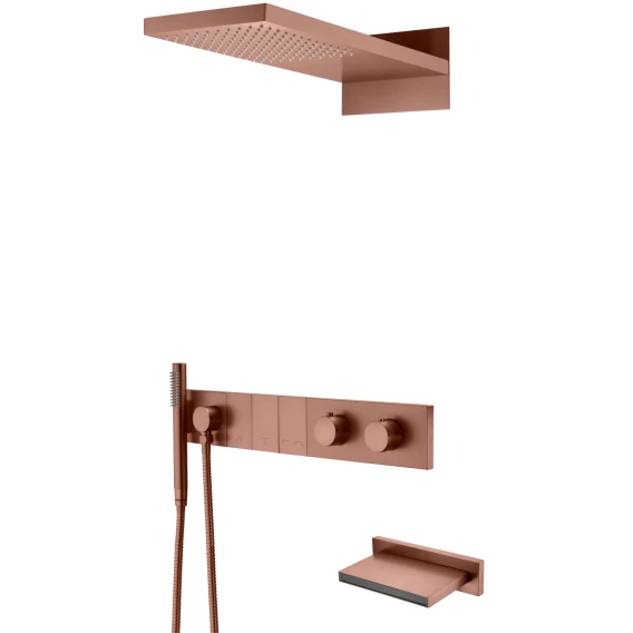 Душевой комплект Boheme Qubic 474-3-CB 300 мм, со смесителем, медь матовая