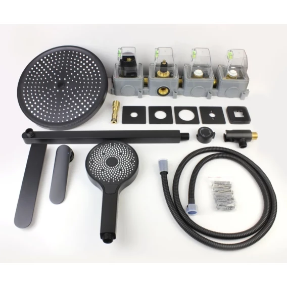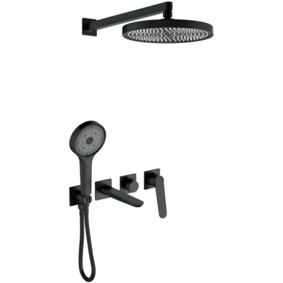 Душевой комплект Bronze De Luxe Icon 3009CB 260 мм, со смесителем, черный матовый