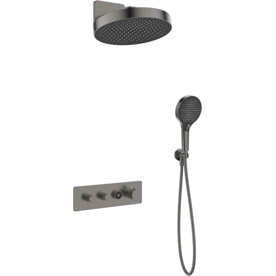 Душевой комплект Cezares Rain RAIN2-SET-T-GM 300 мм, с термостатом, оружейная сталь матовый