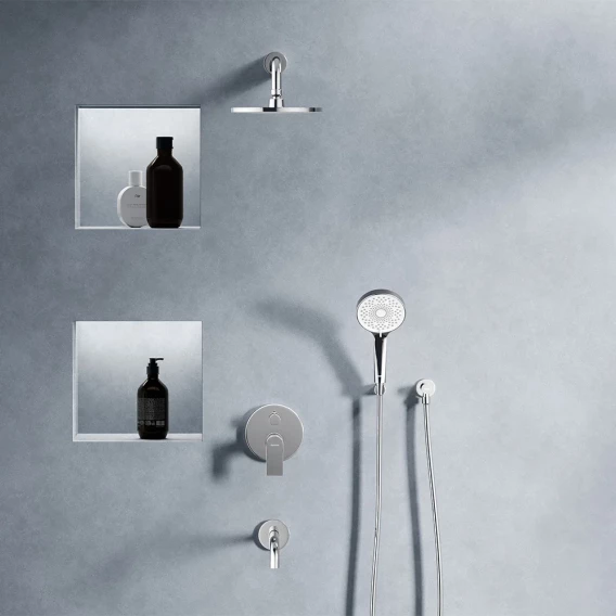 Аэратор, Душевой шланг, Душевая лейка, Держатель для душевой лейки, Подключение для душевого шланга, Верхний душ, Излив, Скрытая монтажная часть, Смеситель, Кронштейн
