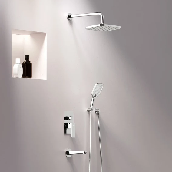 Аэратор, Душевой шланг, Душевая лейка, Держатель для душевой лейки, Подключение для душевого шланга, Верхний душ, Излив, Скрытая монтажная часть, Смеситель, Кронштейн
