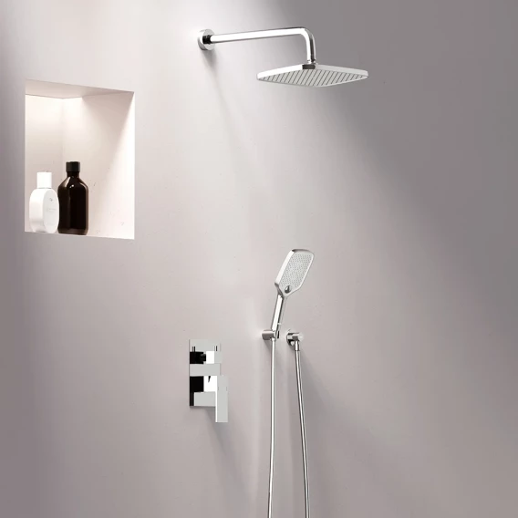 Душевой шланг, Душевая лейка, Держатель для душевой лейки, Подключение для душевого шланга, Верхний душ, Скрытая монтажная часть, Смеситель, Кронштейн