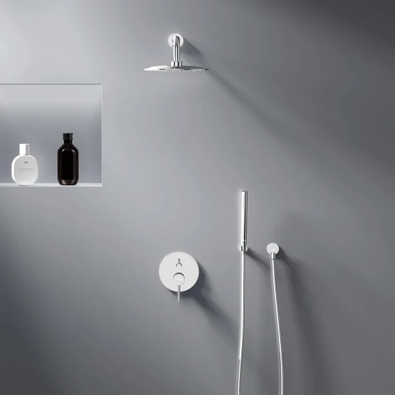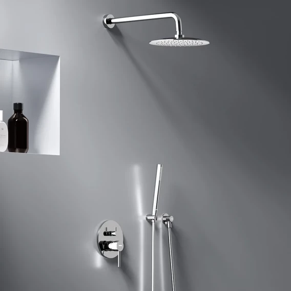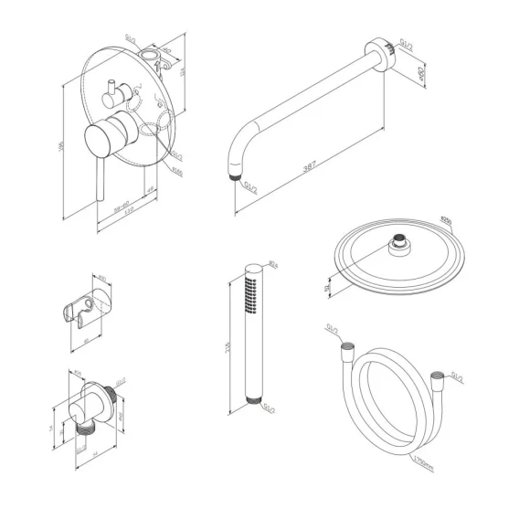 Душевой шланг, Душевая лейка, Держатель для душевой лейки, Подключение для душевого шланга, Верхний душ, Скрытая монтажная часть, Смеситель, Кронштейн