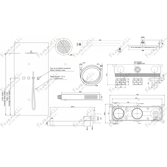 Душевой комплект Feramolli Amos CL742-12 300 мм, CoolStart, со смесителем, хром