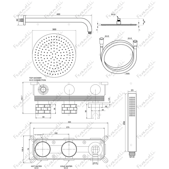 Душевой комплект Feramolli Amos CN738-12 300 мм, CoolStart, со смесителем, никель матовый