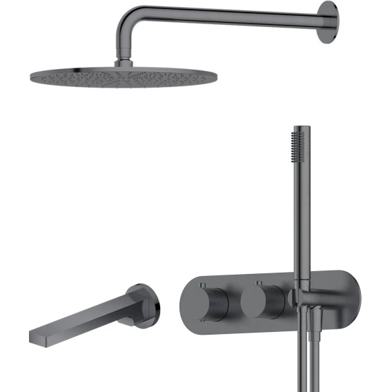 Душевой комплект Feramolli Dante GSD3S 300 мм, с термостатом, графит матовый