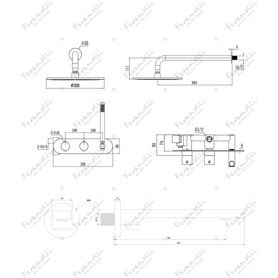 Душевой комплект Feramolli Dante OSD3F 300 мм, с термостатом, золотой матовый
