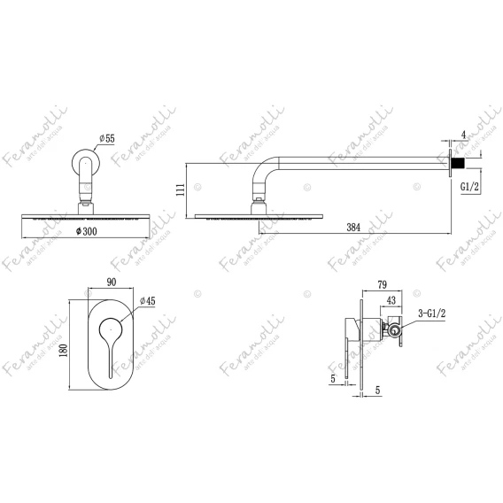 Душевой комплект Feramolli Eva Bella ORS1916-12 300 мм, со смесителем, медь матовая