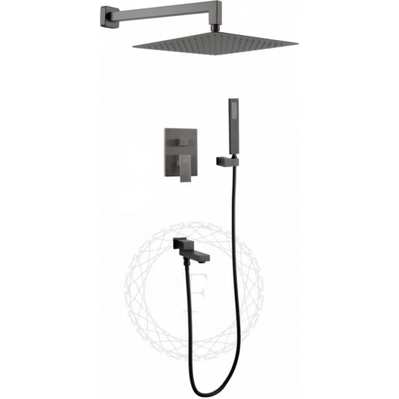 Душевой комплект Filarete Fing FL1040BG 300 мм, со смесителем, графит