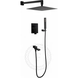 Душевой комплект Filarete Fing FL1042BL 300 мм, со смесителем, черный матовый