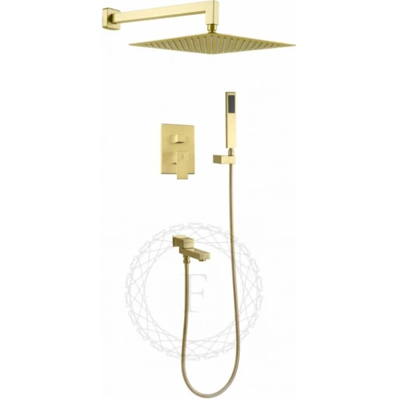 Душевой комплект Filarete Fing FL1040MG 300 мм, со смесителем, золотой матовый